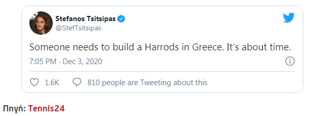 Έτσι έγινε και με το πρόσφατο post του Έλληνα τενίστα ο οποίος εξέφρασε την επιθυμία του να αποκτήσει ένα κατάστημα Harrods η Ελλάδα.