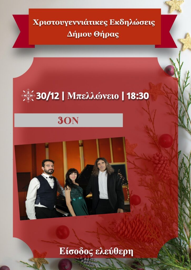 Σαντορίνη: Σήμερα η μουσική παράσταση με τους «3ON» στο Μπελλώνειο