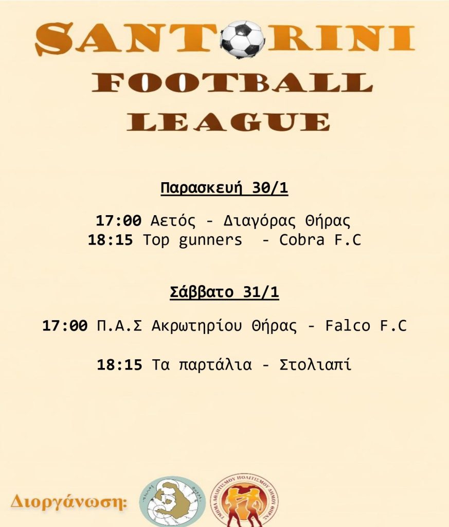 Σήμερα Παρασκευή οι πρώτοι αγώνες για την 3η Αγωνιστική της “Santorini Football League 2025-2026”- το πρόγραμμα