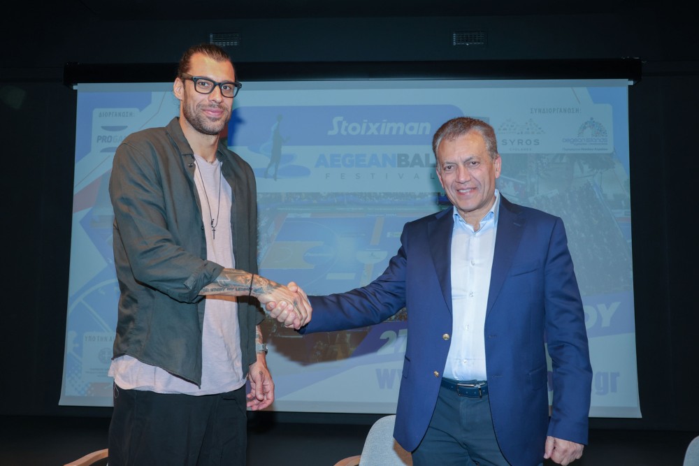 Ο Εμπνευστής και Οικοδεσπότης του Stoiximan AegeanBall Festival Γιώργος Πρίντεζης δήλωσε: «Σας ευχαριστώ θερμά για την παρουσία σας. Από τις 27 έως τις 29 Ιουνίου, η Σύρος υποδέχεται και φέτος κορυφαίους αθλητές από την Ελλάδα και το εξωτερικό, σε μια μοναδική γιορτή του μπάσκετ που έχει γίνει πλέον θεσμός. Το Stoiximan AegeanBall Festival είναι η κορυφαία αθλητική διοργάνωση του καλοκαιριού. Συνδυάζει μπάσκετ υψηλού επιπέδου με κοινωνική προσφορά, ψυχαγωγία και συμμετοχή για όλες τις ηλικίες. Στόχος μας είναι να εμπνέουμε τα παιδιά και τους νέους μέσα από τον αθλητισμό. Παράλληλα, φέτος θα έχουμε την τιμή να φιλοξενήσουμε σπουδαίους αθλητές από την Ελλάδα και το εξωτερικό. Οι συμμετοχές τους δεν είναι μόνο εντυπωσιακές – είναι ουσιαστικές, γιατί μεταφέρουν εμπειρία, γνώση και παρακίνηση στη νέα γενιά. Ευχαριστώ θερμά την Progame, τον Δήμο Σύρου-Ερμούπολης, την Περιφέρεια Νοτίου Αιγαίου, τη Stoiximan και όλους τους χορηγούς που στηρίζουν αυτή την προσπάθεια. Σας περιμένουμε στην Πλατεία Μιαούλη για ένα αξέχαστο μπασκετικό τριήμερο».
