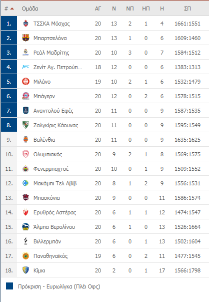 ΟΛΥΜΠΙΑΚΟΣ (Μπαρτζώκας): Χάρισον 12 (3/5 δίποντα, 6/7 βολές, 5 ριμπάουντ, 1 ασίστ, 1 κλέψιμο), Σπανούλης 3 (1), Σλούκας 23 (4/8 δίποντα, 2/2 τρίποντα, 9/9 βολές, 6 ασίστ), Μάρτιν 15 (7/10 δίποντα, 6 ριμπάουντ), Βεζένκοβ, Πρίντεζης 11 (2/5 δίποντα, 1/2 τρίποντα, 4/8 βολές, 5 ριμπάουντ), Ζαν-Σαρλ, Τζένκινς 6 (3/3 δίποντα), Έλις 8 (4/4 δίποντα), ΜακΚίσικ 23 (5/7 δίποντα, 1/3 τρίποντα, 10/13 βολές, 2 ριμπάουντ, 3 ασίστ, 1 κλέψιμο)