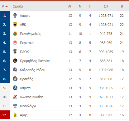 Η ΒΑΘΜΟΛΟΓΙΑ (ΜΕΤΑ ΑΠΟ 13 ΑΓΩΝΕΣ)