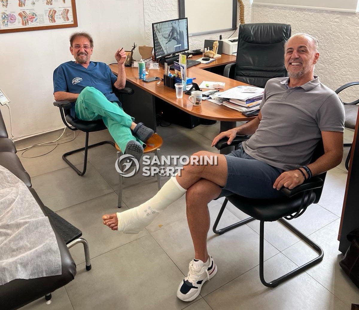 Σήμερα το πρωί εγχειρίστηκε από τον καταξιωμένο ορθοπεδικό Γιώργο Στεφανούδακη, σε μια λεπτή εγχείρηση αποκατάστασης του αχίλλειου τένοντα και όλα πήγαν κατ' ευχήν όπως αποτυπώνεται και στο φωτογραφικό φακό, με το χαμόγελο Γιατρού και ασθενή να δείχνουν την αισιοδοξία για γρήγορη αποκατάσταση του ομοσπονδιακού προπονητή...
