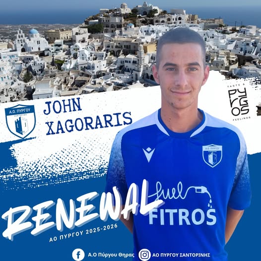 Ο Α.Ο. Πύργου ανακοινώνει την ανανέωση της συνεργασίας με τον νεαρό ποδοσφαιριστή Γιάννη Ξαγοράρη.
