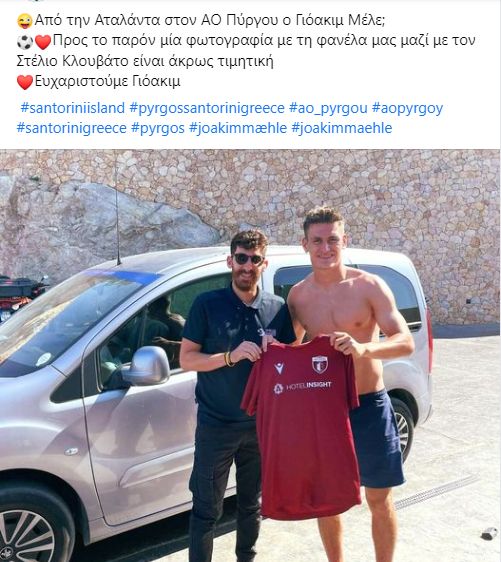 Στην Σαντορίνη περνάει τις διακόπες του ο Δανός αμυντικός της Αταλάντα Γιόακιμ Μέλε και περνώντας από τον Πύργο μαγεύτηκε και σκέφτηκε να "προβάρει" την φανέλα της ομάδας γιατί ποτέ δεν ξέρεις.