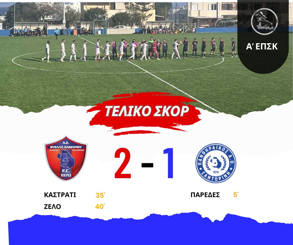 Πήρε το ντέρμπι της Σαντορίνης η Θύελλα Καμαρίου, 2-1 τον Πανθηραϊκό