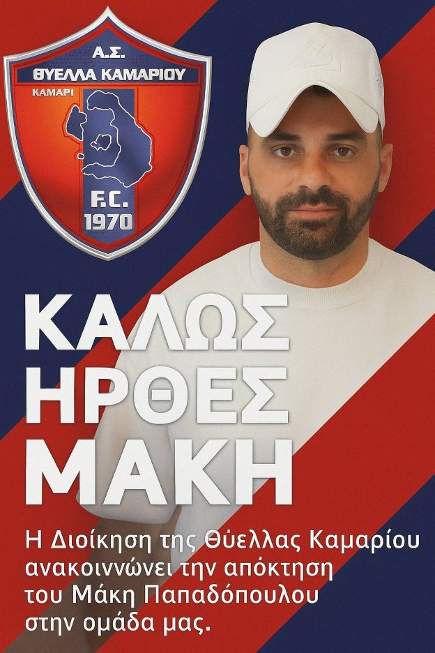 Η Θύελλα Καμαρίου καλωσορίζει και επισημα πλέον στην οικογένειά της τον Μάκη Παπαδόπουλο, έναν παλιό γνώριμο από τη θητεία του στον ΑΣ Σαντορίνης.