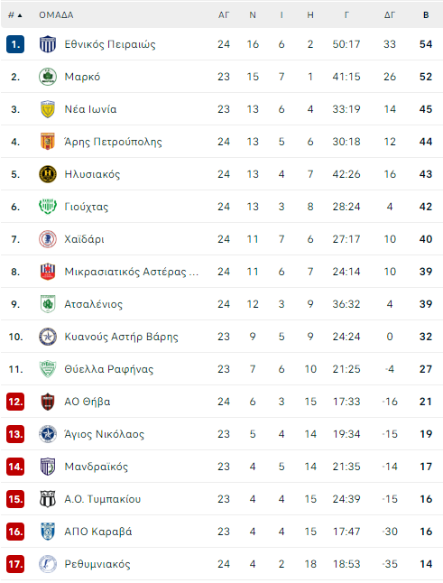 Δείτε πως διαμορφώθηκε η βαθμολογία στον 4ο όμιλο της Γ΄Εθνικής μετά τα αποτελέσματα της 24ης αγωνιστικής