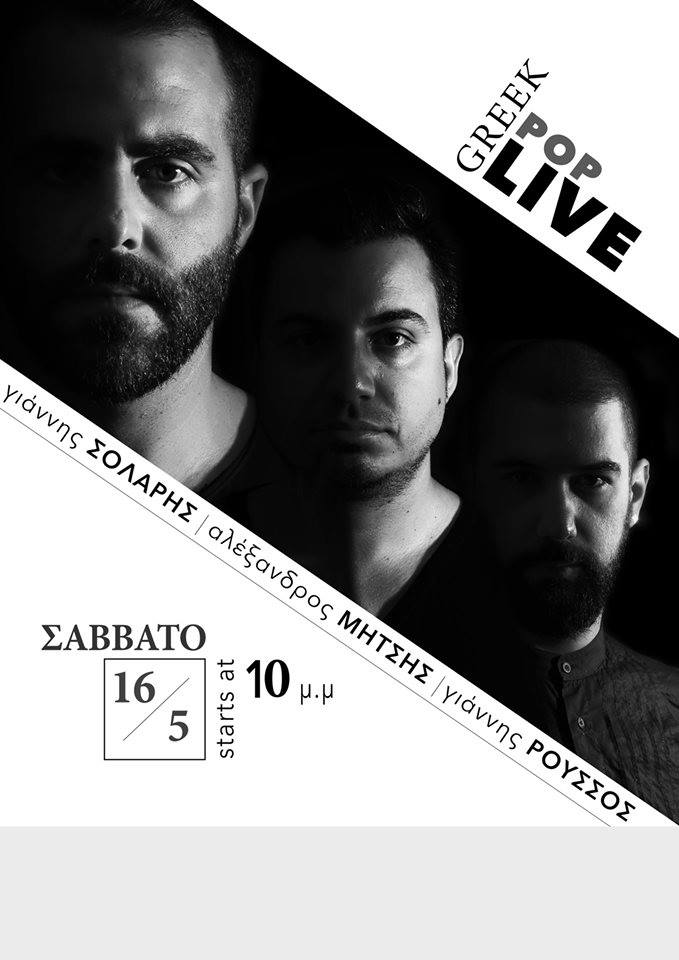 Μη χάσετε απόψε το μουσικό μας LIVE με Γιάννη Σολάρη, Αλέξανδρο Μήτση & Γιάννη Ρούσσο!